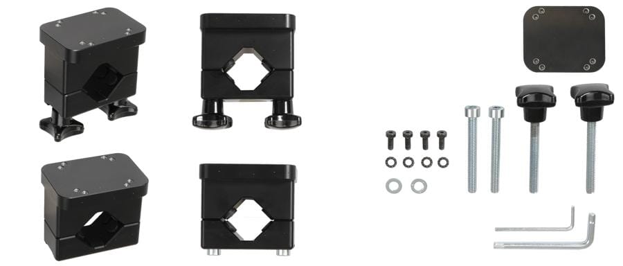 Heavy duty pijpbevestiging, past diameter 29-40 mm. Dubbele AMPS gaten......