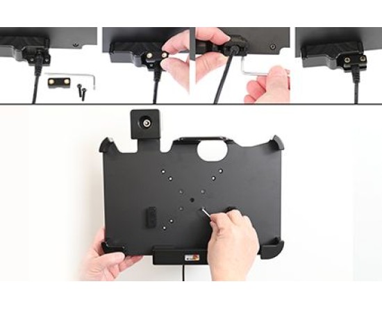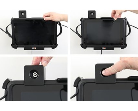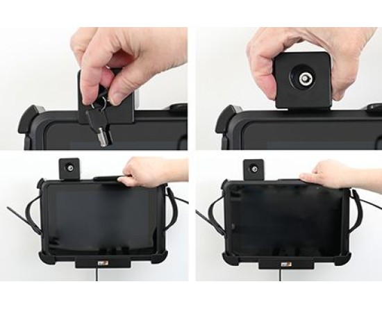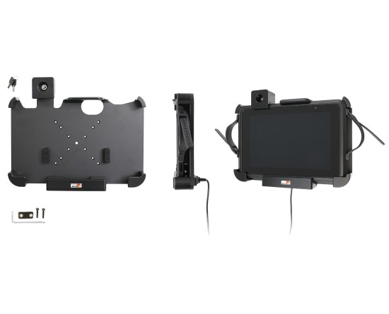 Deze houder is de perfecte keuze als u uw apparaat veilig op zijn plaats wilt hebben en toch gemakkelijk toegankelijk wilt hebben. Op maat gemaakt voor apparaten met geïntegreerde 1D/2D-barcodescanner. De houder heeft een extra robuust ontwerp voor een extra veilige pasvorm en is voorzien van een slot. Om het apparaat uit de houder te halen heb je een sleutel nodig (er worden twee sleutels meegeleverd). Bevestig de houder aan een plat oppervlak of een voetstukbevestiging in een vrachtwagen, distributievoertuig, magazijn enz. Voorgeboorde AMPS en VESA 75/100 standaard gaten. Je hebt volledige toegang tot de camera en alle knoppen en aansluitingen wanneer het apparaat in de houder zit.