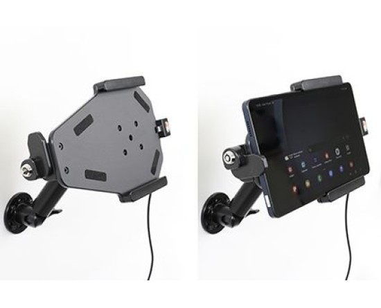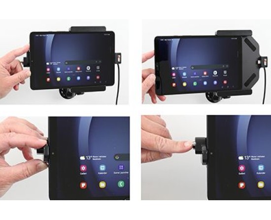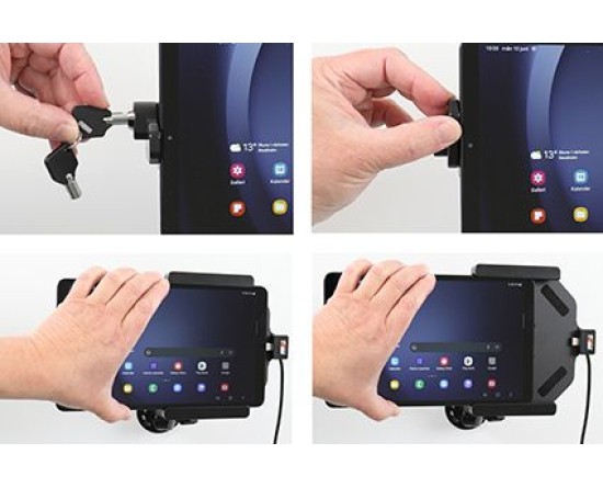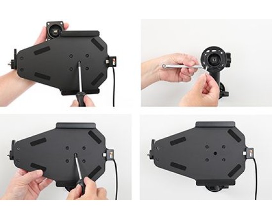 Uw apparaat in deze houder met slot is perfect voor gebruik in winkels, op tentoonstellingen en op elke plaats waar u uw apparaat wilt gebruiken zonder dat het gemakkelijk te verwijderen of ongezien mee te nemen is. De houder is daarom voorzien van een slot. Om het apparaat uit de houder te verwijderen, zijn er twee sleutels meegeleverd. De houder is op een swivel (kantel- en draaibare adapter) gemonteerd en gemakkelijk instelbaar.