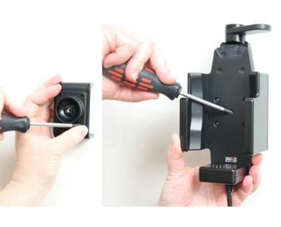 1. Maak de schroef los in het midden van de houder, zodat u de kantelbare bevestigingsplaat op de achterzijde kan verwijderen.