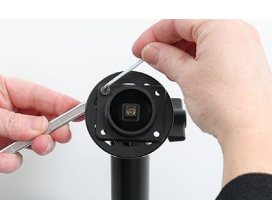 1. Maak de schroef los in het midden van de houder, zodat u de kantelbare bevestigingsplaat op de achterzijde kan verwijderen.