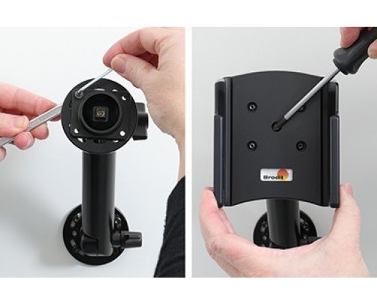 Met een passieve houder van Brodit is uw telefoon of navigatieapparaat altijd binnen zicht- en handbereik. Omdat de houder aan de onderzijde vrij is, kan een autolader of een headset eenvoudig worden aangesloten. Aan de achterzijde van de houder bevindt zich een swivel (kantel- en draaibare adapter), zodat de houder afgesteld kan worden om hinderlijke reflectie tegen te gaan. Monteer de houder op een autospecifieke Brodit ProClip in uw voertuig. Gemakkelijk, snel en veilig!