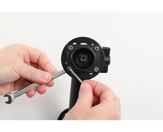 3. Plaats de houder over de bevestigingsplaat zodat de schroef in het gat in de swivel (kantel- en draaibare adapter) past en schroef deze op zijn plaats. Draai de schroef vast zodat de houder stevig op zijn plaats zit, maar toch kan worden afgesteld.