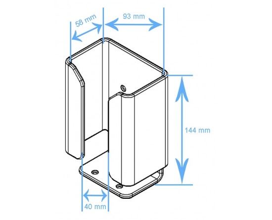 Universele scannerhouder X-Large met heftruckbevestiging. Past op apparaten met pistolgrip. Apparaat met de voorkant naar beneden in de houder geplaatst. Inwendige afmetingen van de houder: 93x144x58 mm (BxHxD).
