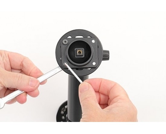 3. Plaats de houder over de bevestigingsplaat zodat de schroef in het gat in de swivel (kantel- en draaibare adapter) past en schroef deze op zijn plaats. Draai de schroef vast zodat de houder stevig op zijn plaats zit, maar toch kan worden afgesteld.