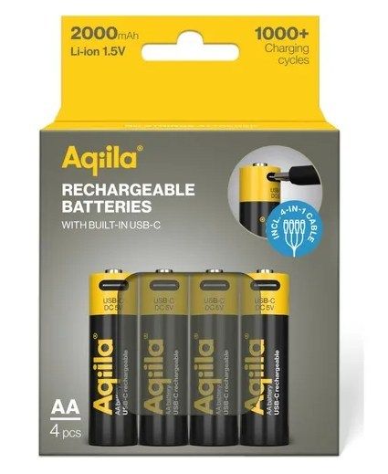 Aqiila AA USB-C Rechargable Battery 1.5V 2000mAh Li-Ion (4x) De Aqiila .....