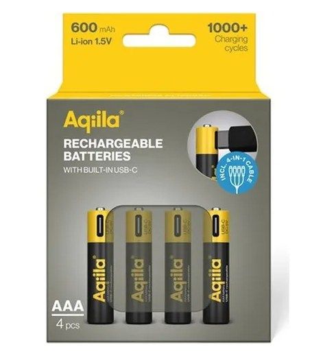 De Aqiila AAA USB-C Rechargable Battery 1.5V 600mAh Li-Ion (4x) levert .....