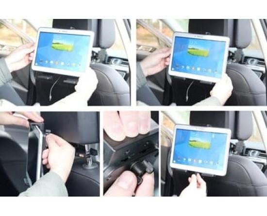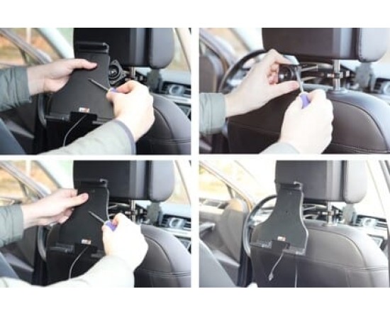 Aan de achterzijde van de houder bevindt zich een swivel (kantel- en draaibare adapter), zodat de houder onder een andere hoek afgesteld kan worden om hinderlijke reflectie op het apparaatscherm tegen te gaan.
