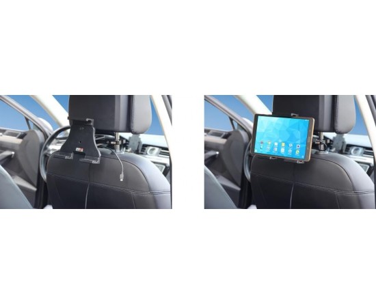 Aan de achterzijde van de houder bevindt zich een swivel (kantel- en draaibare adapter), zodat de houder onder een andere hoek afgesteld kan worden om hinderlijke reflectie op het apparaatscherm tegen te gaan.
