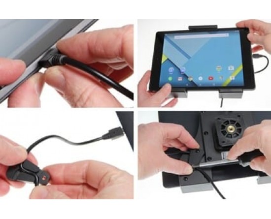 Deze Brodit houder/lader is voorzien van een vaste installatie aansluiting voor het laden van uw toestel. Zodra u het toestel in de houder plaatst, start het laden. Aan de achterzijde van de houder bevindt zich een swivel (kantel- en draaibare adapter), zodat de houder onder een andere hoek afgesteld kan worden om hinderlijke reflectie op het apparaatscherm tegen te gaan. Installatie is gemakkelijk en snel. Wordt geleverd met gedetailleerde installatie-instructies en is gemaakt van zwart ABS plastic.