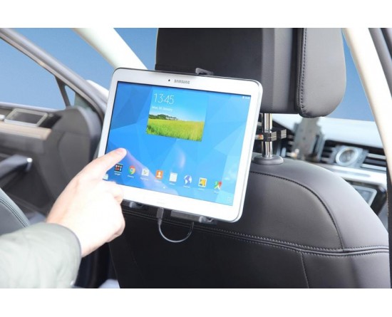 Aan de achterzijde van de houder bevindt zich een swivel (kantel- en draaibare adapter), zodat de houder onder een andere hoek afgesteld kan worden om hinderlijke reflectie op het apparaatscherm tegen te gaan.