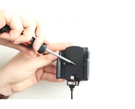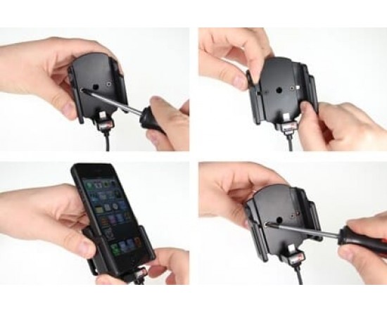 1. Om de houder voor uw apparaat aan te passen: Maak de schroeven aan de voorzijde van de houder los, zodat de zijkanten van de houders kunnen worden aangepast. Plaats het apparaat in de houder en druk de zijkanten tegen elkaar zodat het apparaat stevig op zijn plaats is. Draai de schroeven aan de voorzijde van de houder aan.