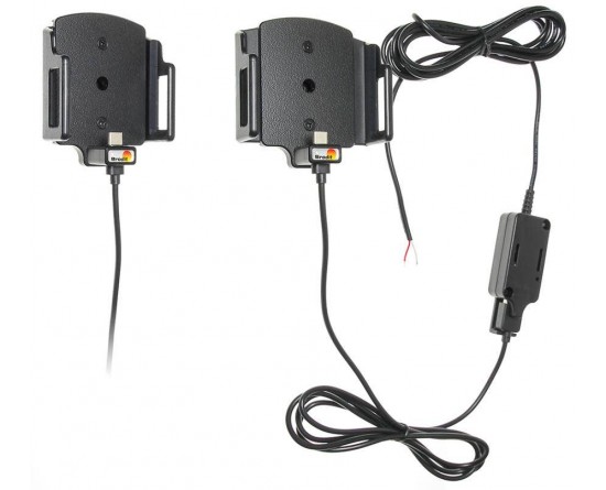 Deze Brodit houder/lader is voorzien van een vaste installatie aansluiting voor het laden van uw toestel. Zodra u het toestel in de houder plaatst, start het laden. Aan de achterzijde van de houder bevindt zich een swivel (kantel- en draaibare adapter), zodat de houder onder een andere hoek afgesteld kan worden om hinderlijke reflectie op het apparaatscherm tegen te gaan. Installatie is gemakkelijk en snel. Wordt geleverd met gedetailleerde installatie-instructies en is gemaakt van zwart ABS plastic.