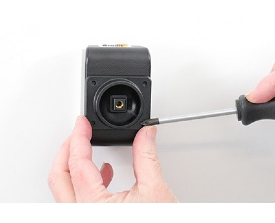 3. Plaats de houder over de bevestigingsplaat zodat de schroef in het gat in de swivel (kantel- en draaibare adapter) past en schroef deze op zijn plaats. Draai de schroef vast zodat de houder stevig op zijn plaats zit, maar toch kan worden afgesteld.