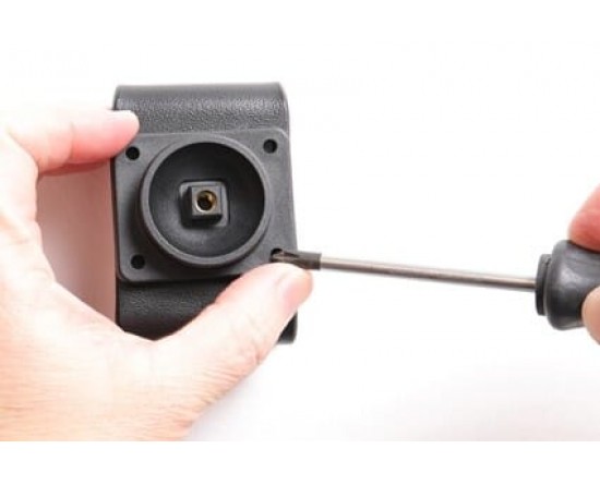 1. Loosen the screw in the center of the holder so you can remove the tilt swivel attaching plate on the back.