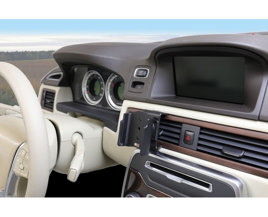 The holder is equipped with a tilt swivel so you can easily adjust the angle for better viewing, or switch between portrait and landscape mode. Tilts 17° and swivels 360°. Mounting plate 42x50 mm with AMPS-holes. Made of high grade black ABS/Acetal plastic. Made in Sweden. Attach onto ProClip Mounting Platform.