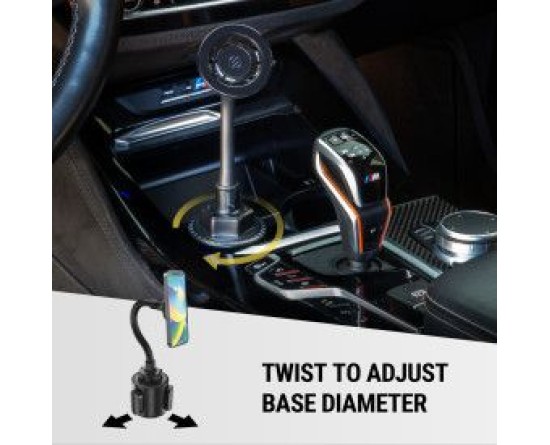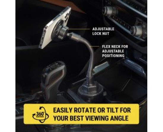 Conveniently and securely mount your phone for hands-free use with this fully adjustable cup holder mount.