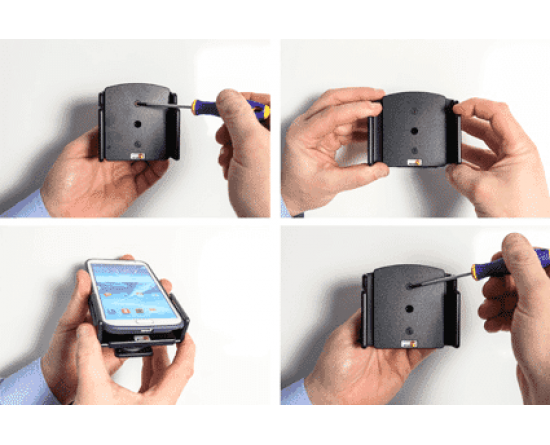 Met een passieve houder van Brodit is uw telefoon of navigatieapparaat altijd binnen zicht- en handbereik. Omdat de houder aan de onderzijde vrij is, kan een autolader of een headset eenvoudig worden aangesloten. Aan de achterzijde van de houder bevindt zich een swivel (kantel- en draaibare adapter), zodat de houder afgesteld kan worden om hinderlijke reflectie tegen te gaan. Monteer de houder op een autospecifieke Brodit ProClip in uw voertuig. Gemakkelijk, snel en veilig!