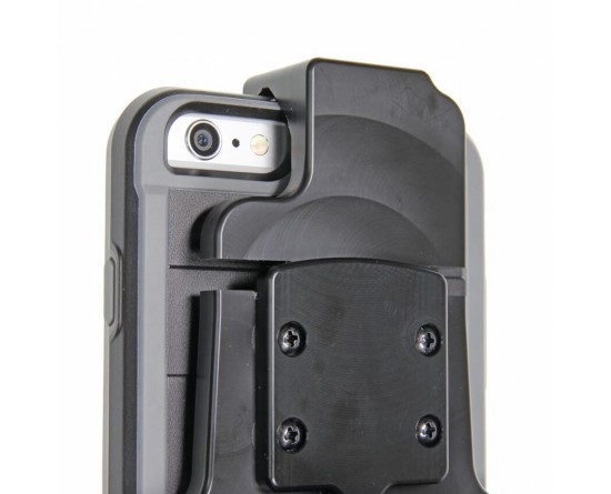 Aan de achterzijde van de houder bevindt zich een swivel (kantel- en draaibare adapter), zodat de houder onder een andere hoek afgesteld kan worden om hinderlijke reflectie op het apparaatscherm tegen te gaan.