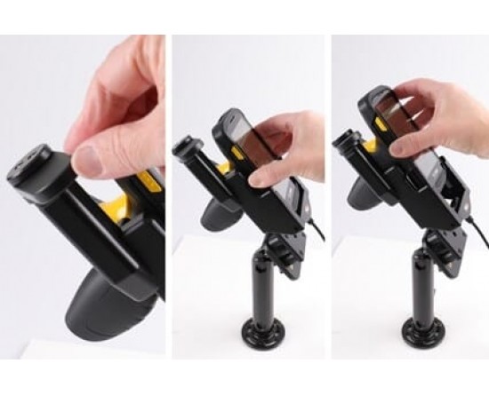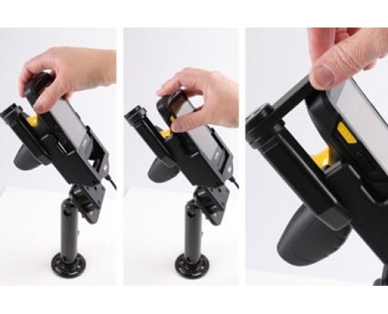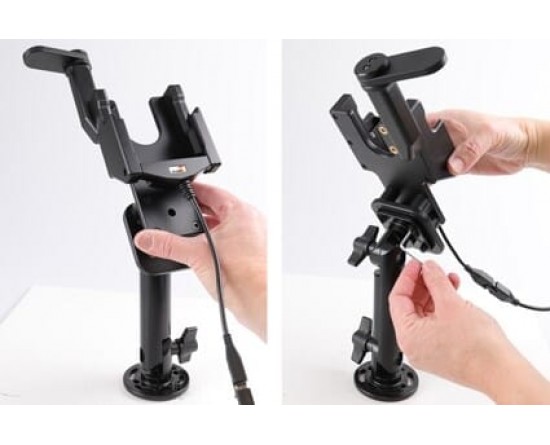 De keuze voor u die u PDA stevig op zijn plaats wilt hebben, goed bevestigd en nog steeds binnen handbereik. De houder heeft een sterk, robuust ontwerp om ruwe handling te weerstaan bij professioneel gebruik. Het draaiende bovenste deel houdt uw apparaat extra veilig op zijn plaats in de houder, het 'vergrendelt' het apparaat in de houder, zodat het niet het minst kan schudden. Het is gemakkelijk om de PDA in de houder te plaatsen en mee te nemen bij het verlaten van het voertuig. Bevestig op een Pedestal mount.
