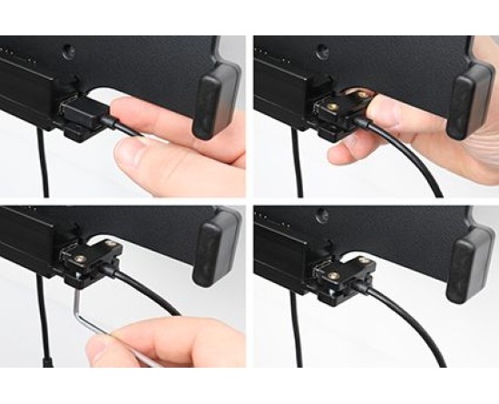 1. Sluit het apparaat aan via USB Host. Druk de kabel in de contactdoos, plaats de kabelbus over de voorgeboorde gaten, schroef de kabelbus vast met de meegeleverde schroeven.