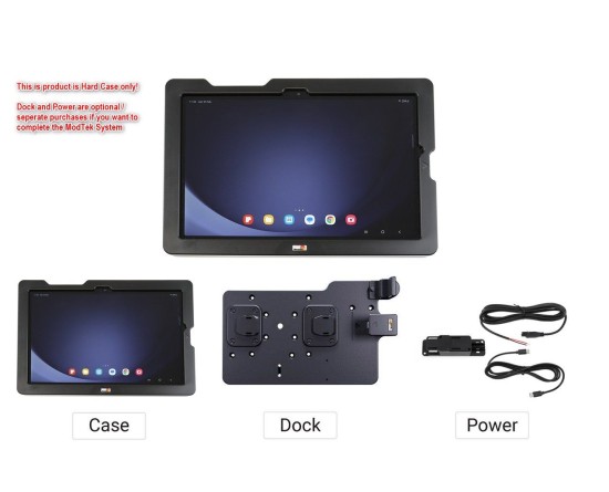 De ModTek Hard Case biedt ongeëvenaarde bescherming en beschermt uw tablet tegen slijtage bij dagelijks gebruik. Het ontwerp zorgt voor naadloze toegang tot alle bestaande knoppen, poorten, camera's en het scherm van de tablet. Bovendien bieden de vingerplastic hulptool een comfortabele en ergonomische grip voor een veilige grip.   Uitgerust met schokabsorberende veren biedt het de ultieme bescherming van het apparaat. De Hard Case is getest op een val op beton vanaf 1,8 m. Directe USB-C-toegang tussen de tablet en het dock maakt gelijktijdig snel opladen en snelle gegevensoverdracht mogelijk.   Een complete ModTek montageoplossing bestaat uit een ModTek Dock, Hard Case en een voeding naar keuze. Accessoires zoals onze Lock Module en USB Hub zijn ook verkrijgbaar.   Het ModTek-systeem: Het ModTek-systeem is de volgende generatie apparaatmontage. De ModTek Hard Case biedt ongeëvenaarde bescherming en beschermt uw tablet tegen slijtage, terwijl de ModTek Dock universeel compatibel is met alle huidige en toekomstige ModTek Hard Cases, wat een lange levensduur garandeert en de totale kosten verlaagt.   ModTek-systemen kunnen worden geconfigureerd met verschillende vermogens- en add-on-opties om aan uw exacte behoeften te voldoen, en vervolgens op vrijwel elke montagearm of platform worden gemonteerd met behulp van de standaard VESA of AMPS. Uw investering in het Brodit ModTek-systeem is ontworpen om uw totale eigendomskosten te verlagen, vooral als u verschillende tablets mixt en matcht en wanneer het apparaat uw tablets in de toekomst upgradet. Bouw vandaag nog uw ModTek-oplossing! Kies uw ModTek Dock, Hard Case en kies uit drie beschikbare stroombronnen: wand-, bedrade en Cig Plug-adapter.