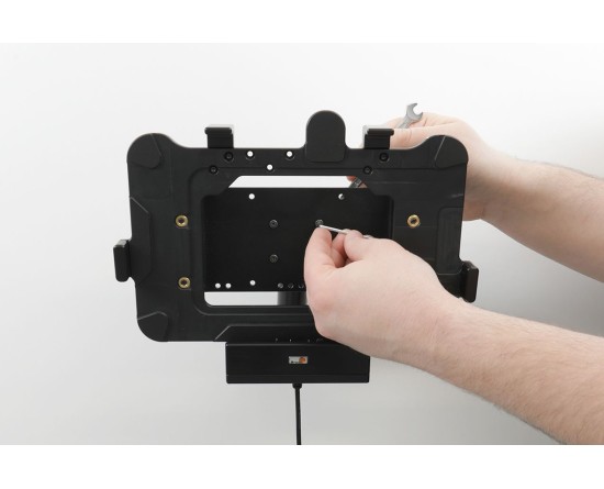 Past op apparaten met Rugged Boot / Exoskeleton, Zebra originele uitbreidingsachterkant. Module Upgrade Cradle. Met Easy-switching systeem. De Zebra ET4x-serie module upgrade (modulaire) houders van Brodit zijn ontworpen om bestand te zijn tegen slijtage bij professioneel dagelijks gebruik, en zorgen voor een productievere werkdag en een betere werkomgeving met uw apparaat binnen het zicht en binnen handbereik. Veilig, efficiënt en handig! Deze houder is de perfecte keuze als u uw apparaat op zijn plaats wilt installeren en gemakkelijk toegankelijk wilt hebben. De houder is op maat gemaakt met een perfecte pasvorm voor apparaten met of zonder enige uitbreidingsachtermodule/handriem, Otterbox Utility-serie Latch-handriem. Het heeft een robuust ontwerp voor gebruik in een normale vorkheftruckomgeving. Je hebt volledige toegang tot de camera, scanner, knoppen en poorten terwijl je gedockt bent. Eenvoudig met één hand inbrengen en verwijderen. Eenvoudig schakelsysteem: Dankzij het eenvoudig schakelsysteem kunt u alleen de houder upgraden en de geïnstalleerde kabels behouden. Het scheelt je een hoop tijd! Bij het upgraden naar een nieuw apparaat hoeft u geen volledige installatie meer uit te voeren. Hetzelfde geldt voor onderhoud in case van garantie of schade. U koppelt de houder eenvoudig los van de laadkabel via de Molex 6-pins snelkoppeling, en sluit vervolgens de nieuwe houder aan. De omschakeling is in een paar seconden gedaan. Bevestig de houder op een vlakke ondergrond of pedestal in een vorkheftruck, vrachtwagen, distributievoertuig, magazijn, tafelblad enz. Achterplaat van staal met 4 mm AMPÈRE en 4 mm VESA 75 standaard gaten. Gemaakt van hoogwaardig ABS-, Acetaal-kunststof en metaal. Kleur: Zwart. Gemaakt in Zweden. Kies de plaatsing van de installatie met zorg, apparaten mogen niet op plaatsen worden geplaatst waar ze het zicht of belangrijke bedieningselementen kunnen blokkeren. De houder mag alleen op een geschikte plaats worden bevestigd. Installaties vinden altijd plaats naar eigen inzicht en verantwoordelijkheid van de klant.