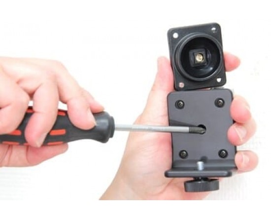 1. Maak de schroef los in het midden van de houder, zodat u de kantelbare bevestigingsplaat op de achterzijde kan verwijderen.