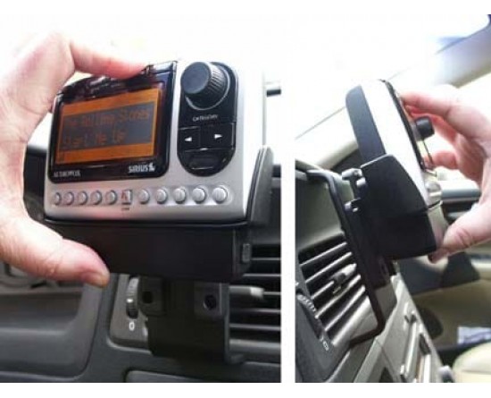 Door de schuiffunctie kan de houder van het apparaat of apparaat eenvoudig van de houder worden verwijderd. Uw apparaat kan een voorruit zuignap mount bevestigd aan de AMPS gaten. Als dat zo is, moet dit worden verwijderd voordat u de mannelijke plaat bevestigen. De foto's tonen de apparaat montage adapter in gebruik met een Sirius ratellite ontvanger en een ProClip Montage Platform.
