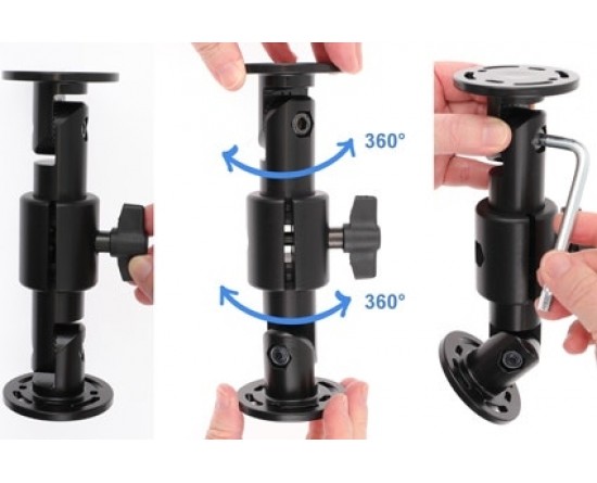Verstelbare Pedestal montage uitbreiding deel 5,5' draaibare, kleine tanden. Totale lengte: 156 mm. CC afmeting: 152 mm. Inclusief 1 schroef, 1 vleugelmoer. Zwart.