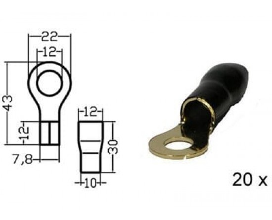 Kabelschoen ring verguld zwart 20mm² diam 10mm 20x
