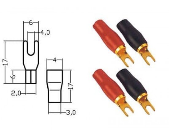 Kabelschoen vork verguld rood/zwart 4-6mm² diam 4 mm