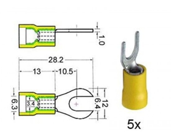 Kabelschoen vork 6 mm geel 5 stuks