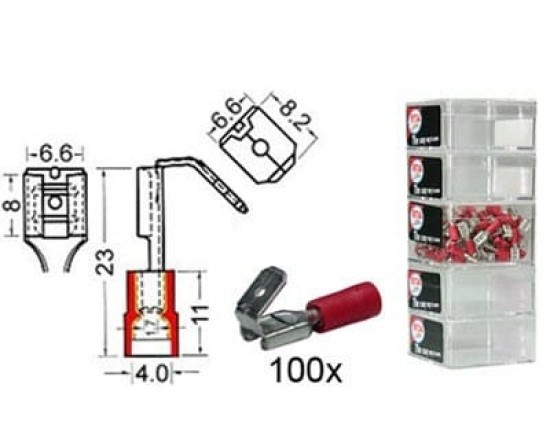 Kabelschoen schuif mann./ vrouw. 6 3-6 3 mm rood 100 stuks