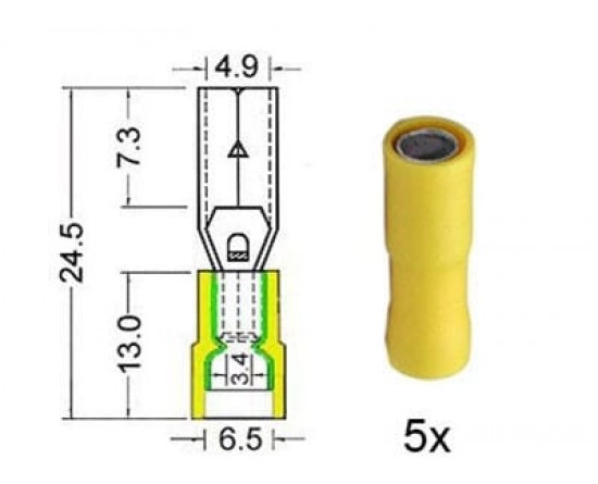 Kabelschoen cylindrisch vrouw. 5 0mm geel 5 stuks
