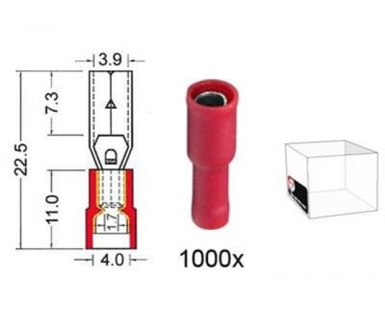 Kabelschoen cylindrisch vrouw. 4 0 mm rood 500 stuks