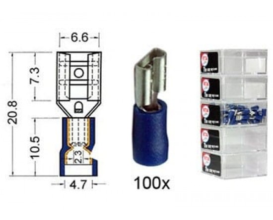Kabelschoen schuif vrouwelijk 6.3 mm blauw 100 stuks