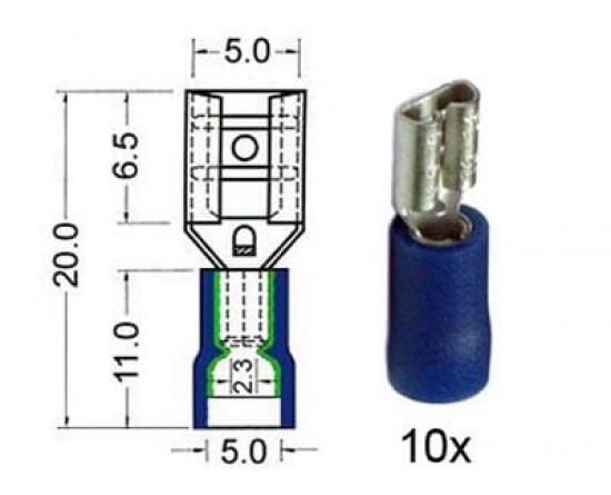 Kabelschoen schuif vrouwelijk 4.8 mm blauw 10 stuks