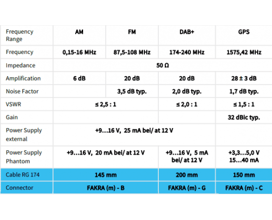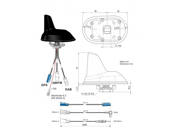 Combi antenne AM/FM / DAB / GPS Shark Fakra M/DIN M/SMB F 5m