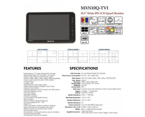 MXN10Q-TVI 10.1" high resolution wide view 4 inputs.