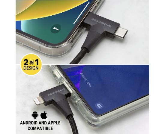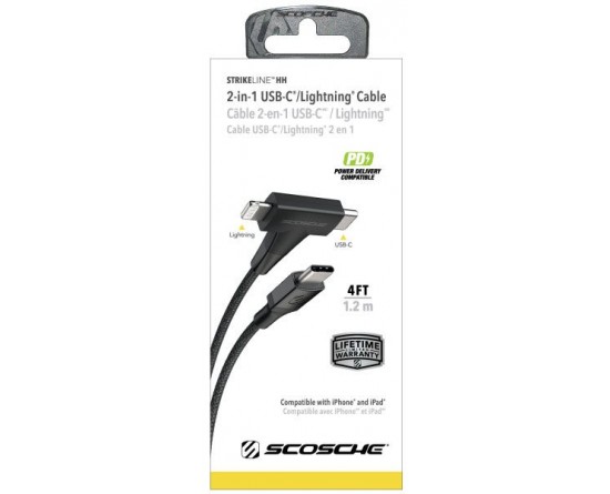 Datakabel usbC - usbC + Lightning 2in1 StrikeLine™ 1.2m zw.