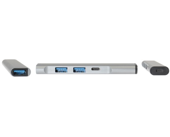 Brodit 3-Port Expansion Hub 3x usbA 1x usbC pass-through