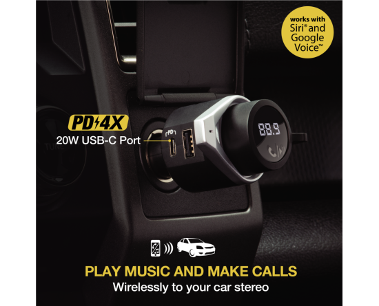 Wireless Carkit FM transmitter 18W PD 1x usbA 1xusbC 1xjack